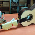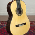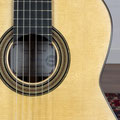 The guitar presented here is made of Spruce and Indian rosewood. The aesthetics are successful and the lutherie work is well done. Soundwise, we find the strong character of Andalusian guitars. Notes are clear, vibrant and rich in harmonics. The timbre is warm, expressiv and woody. A beautiful, endearing instrument that's a pleasure to play, and we invite you to come and discover it.