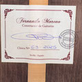 Fernando Moreno is a Spanish luthier based in Seville. He began playing the guitar as a teenager. In 2000, he and Valeriano Bernal opened a guitar store in Granada. His meeting with Granada luthier Antonio Ariza turned him towards lutherie. He spent two years training with Víctor Díaz (son of Francisco Manuel Díaz). In 2007, Fernando Moreno set up his workshop in the Alcalá de Guadaíra village of Seville.