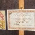 Lorenzo Frignani lives and works in Modena. Since 1986, he has been making guitars, violins and lutes as well as restoring antique instruments and he has won several prestigious awards for his lutherie work. In addition to his main career in instrument building, he also works as a court expert, consultant, teacher, and lecturer in the field of lutherie. He is involved in research on the use of local tone woods and has written several books on the history lutherie. This instrument is the result of years of research into both acoustic performance and sound quality. It uses a bracing system of original and personal design. The aesthetics are highly successful. The purfling on the back, ending in an oval figure, recalls Frignani's interest in questions of harmony and balance around the "Vesica piscis".