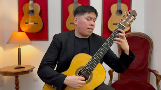 This beautiful guitar by Paolo Coriani is inspired by a Hermann Hauser I copy. The aesthetics and the workmanship are, as usual with this luthier, of a remarkable quality, the woods are superb. Soundwise, the notes are full, colored, vibrant and singing. The tone is deep, woody with a magnificent expressiveness: Paolo Coriani succeeds in getting back to the spirit that makes the reputation of his guitars, du grand art...